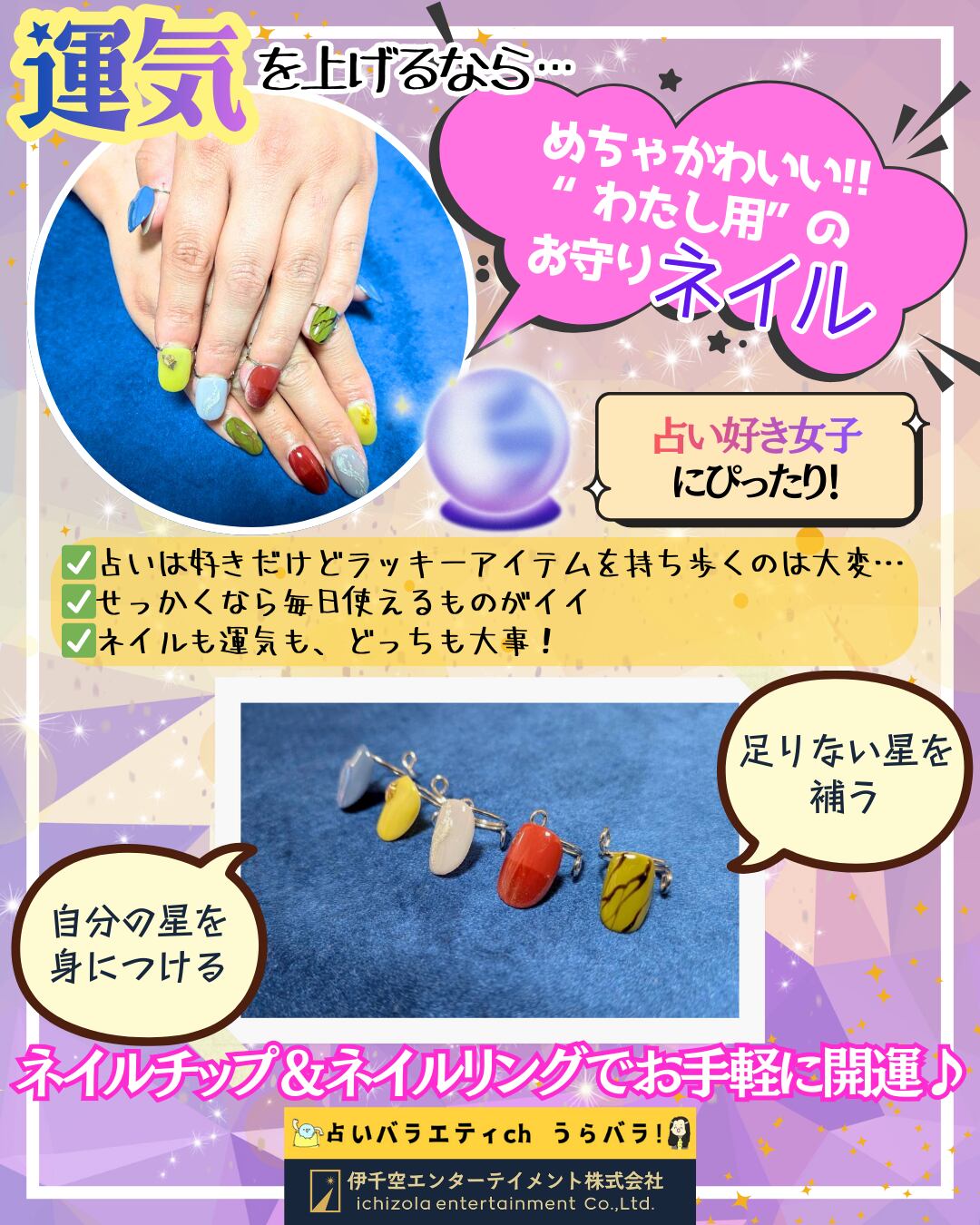 算命学と、九星気学の考え方(五行:木・火・土・金・水)をもとにデザインした《開運ネイルチップ&ネイルリング》です。